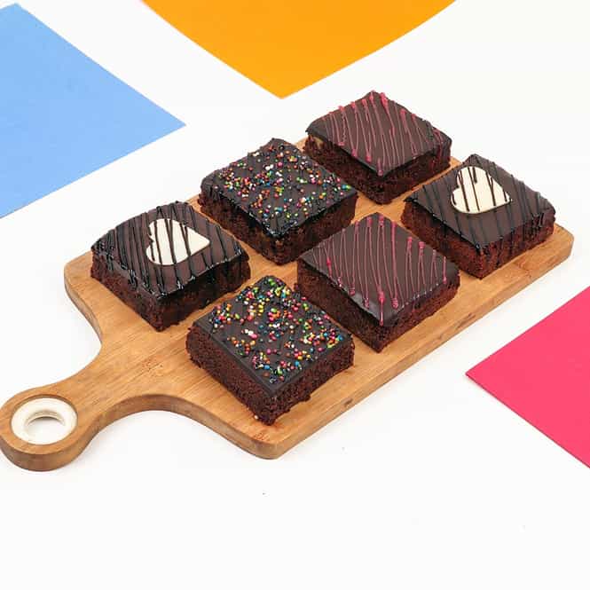 A perfectly baked set of six delicious and dense chocolate brownies can take your taste buds on a sweetly scrumptious ride. Two brownies are topped wi... Read more