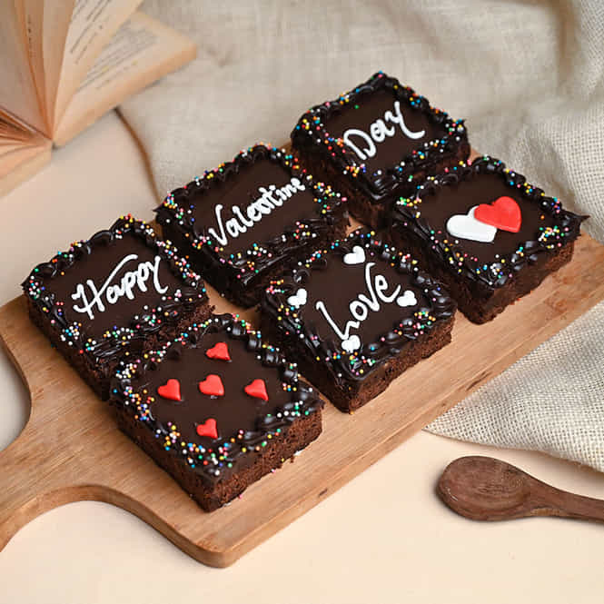 Set Of 6 Valentine Themed Chocolate Brownies