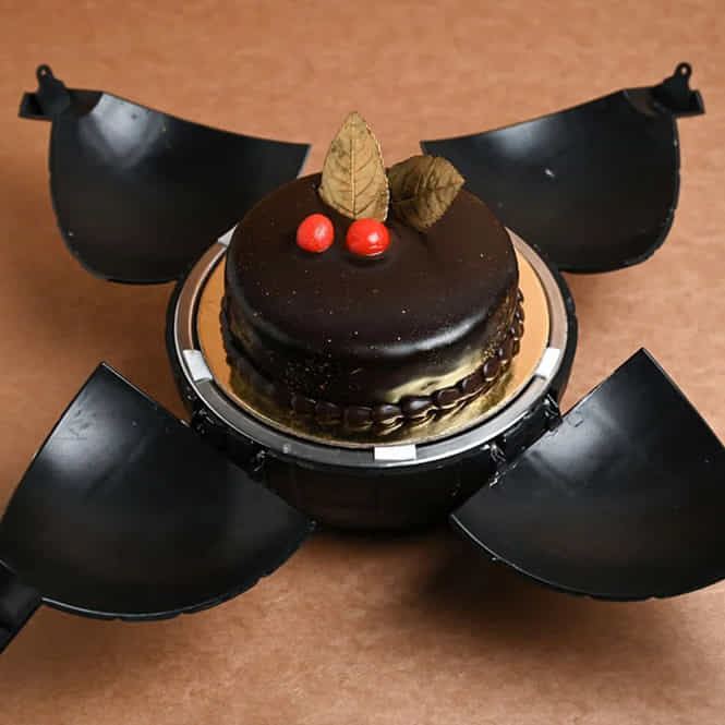 This showstopper bomb cake opens up to reveal a tempting chocolate cake glazed with rich choco ganache & cherry toppings.