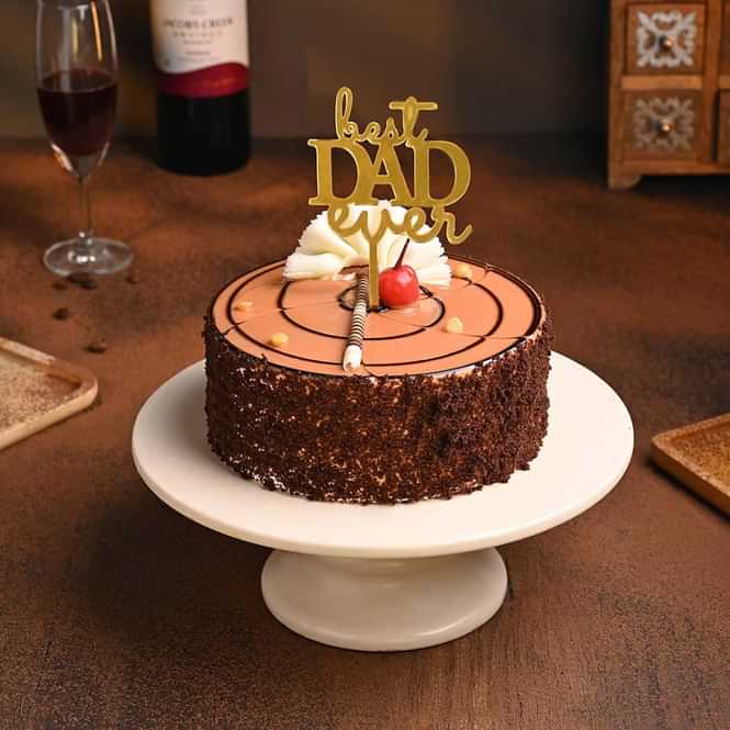 Exquisite Butterscotch Cake with a crumb-coated side, a cherry on top and a "Best Dad Ever" will make a delightful tribute to the sweetest father.