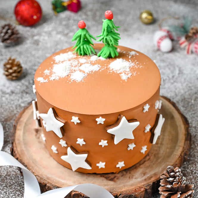 Bring a little holiday cheer to your day with our tasty, satisfying Chocolate Xmas cake. The cake is topped with edible Christmas trees & sprinkled co... Read more