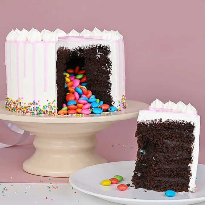 Chocolate gems surprise cake, draped in buttercream, adorned with creamy swirls. As you cut, gems overflow, tickling taste buds—a pure chocolate delig... Read more