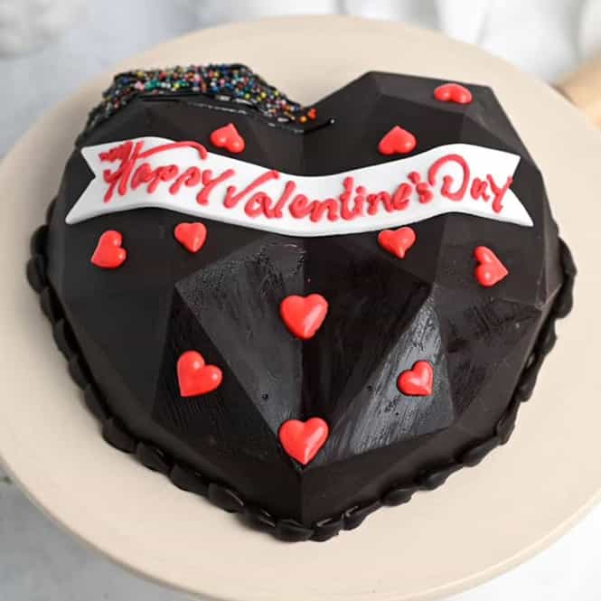 The diamond-cut design of the heart made from hardened dark chocolate is topped with small hearts, and Happy Valentine's Day tag. As you break the sur... Read more