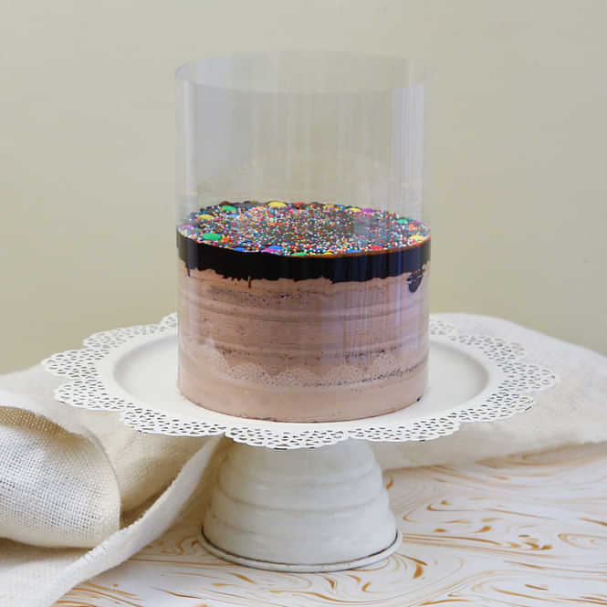 This chocolate gems pull me up cake features a rich chocolate layer topped with colorful gems & sprinkles. When lifted, the chocolate ganache flows do... Read more