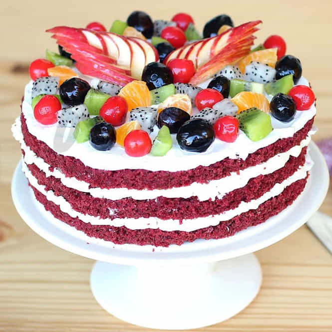 Fruity delicious! The sinful velvet cake loaded with Inside- Custard Cream With Chopped Fruits like ...Read more