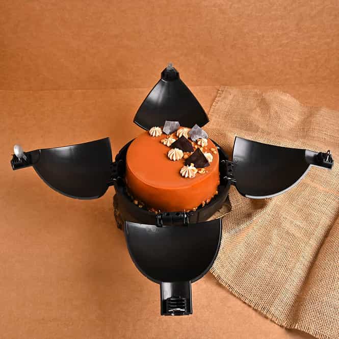 Butterscotch flavoured cake with caramel glazing, tempered chocolate shards, & whipped cream dollops.