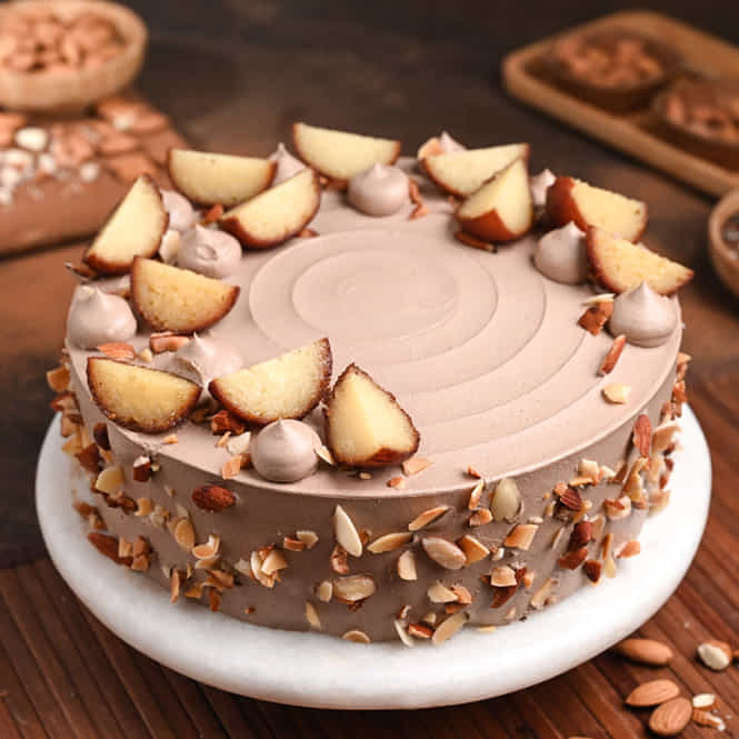 A fusion where east meets west, this cake is baked & layered with buttercream frosting & Gulab Jamun chunks. This cake is further decorated with almon... Read more
