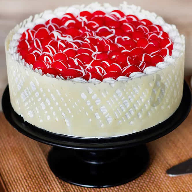A delightful burst of flavours - juicy cherries & white chocolate. The vanilla cake base is layered with cherry chunks & cream.