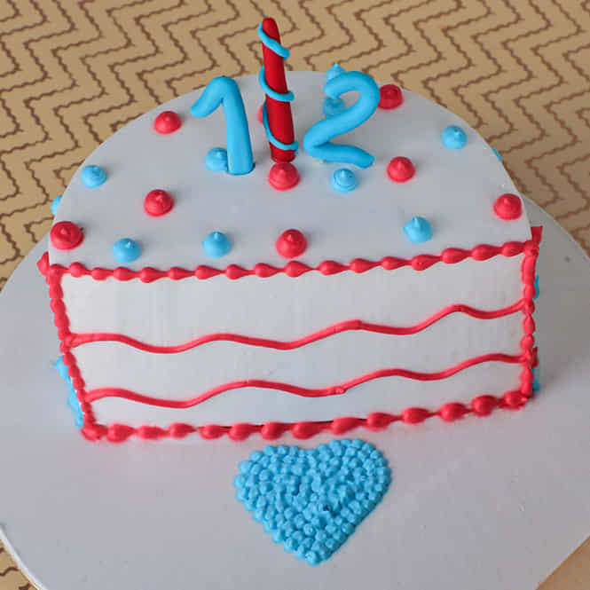 Elegant red velvet half cake features a simple, elegant design. Its white vanilla base is adorned with red & blue frosting, making it ideal for six-mo... Read more