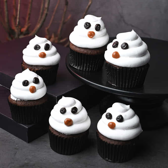Be the Queen or King of Halloween by treating your sweet tooth loved ones with this set of spooky and mesmerising frosty ghost choco cupcakes. The set... Read more