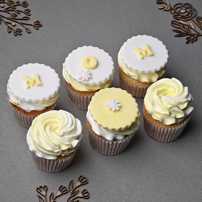 Treat Mom to six sumptuous pineapple-flavored cupcakes, elegantly adorned with floral designs and "Mom" inscriptions.