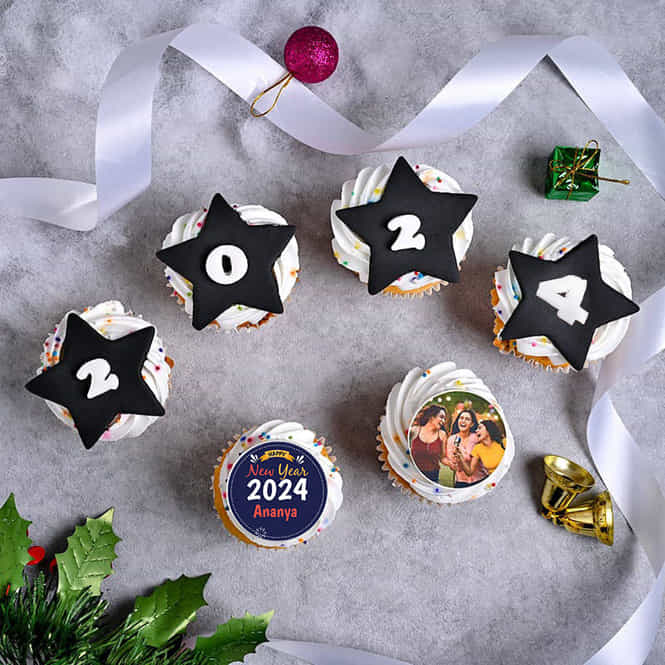 Set Of 6 New Year Cupcakes