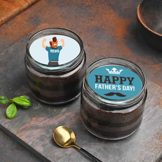 Celebrate the epitome of love and bond this Father's Day with our delectable Set of Two Chocolate Jar Cakes. One jar cake is adorned with an edible su... Read more