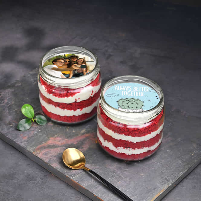 Friendship Day Personalised Red Velvet Jar Cake