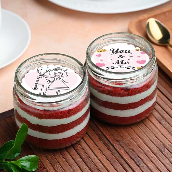 Capture love's essence with this delightful Red Velvet Jar Cakes duo. These delectable jars are brimming with the goodness of rich red velvet cake lay... Read more