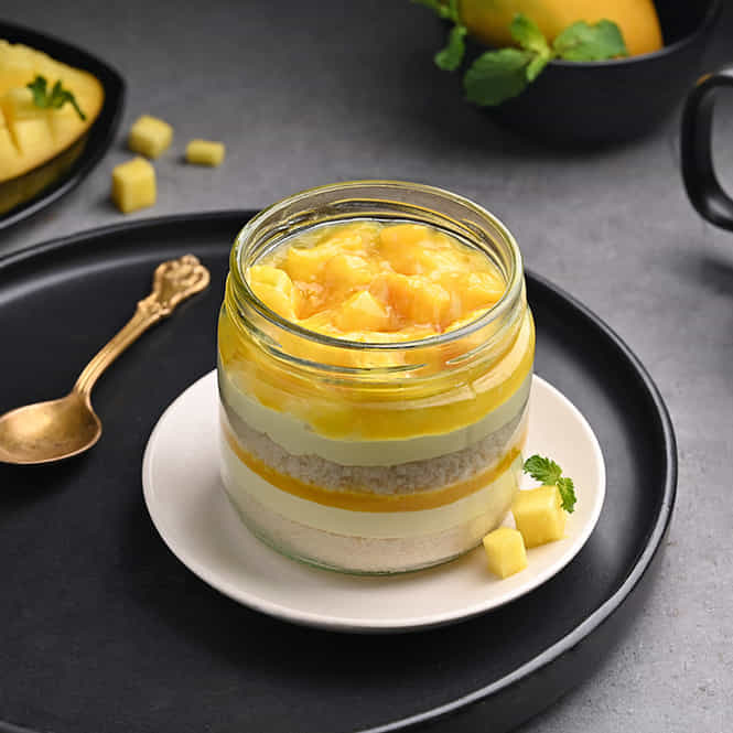 The King Of Fruits Finds Its Way Into A Jar! An Enticing Jar Cake Layered With Sponge Whipped Cream And Garnished With Mango Topping. A Perfect Balanc... Read more