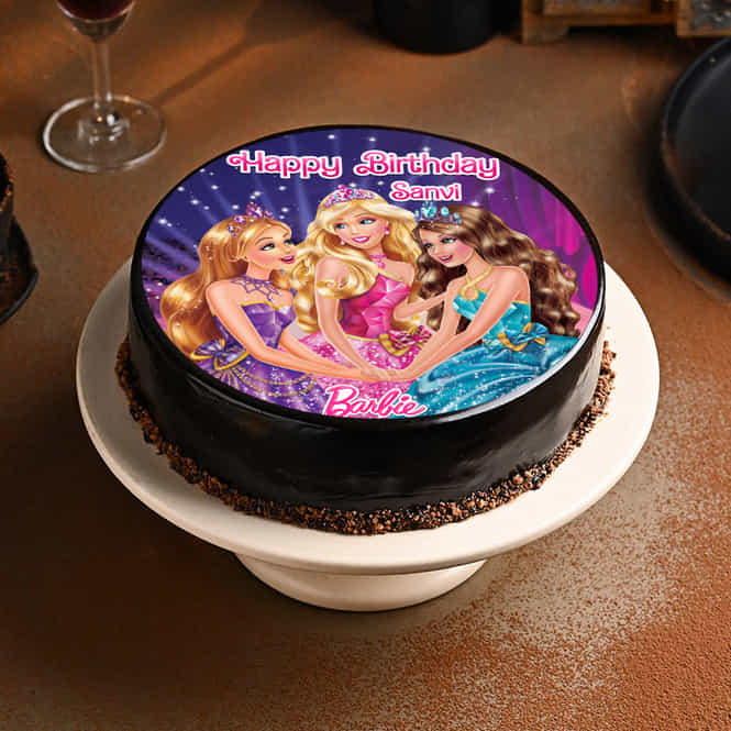 Delight your little one with this charming Barbie-themed cake! Topped with an edible Barbie print and "Happy Birthday" text, it's the perfect treat fo... Read more