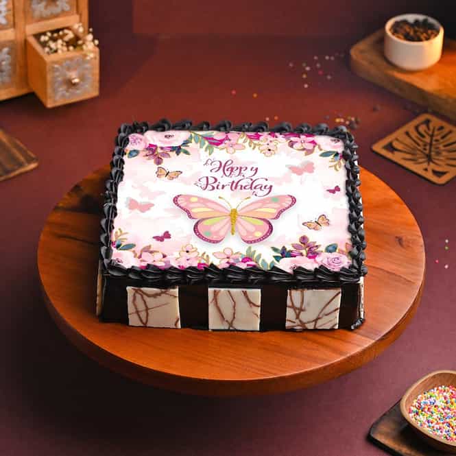 Let this cake bring a flutter of joy to her birthday, where each slice dances with the grace and elegance of butterflies, turning every bite into a mo... Read more