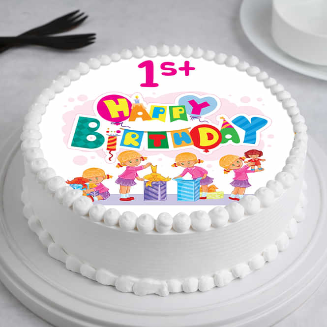 Make it a startling celebration of your little one's first birthday. This round and creamy photo cake looks eye pleasing and taste heavenly delicious.... Read more