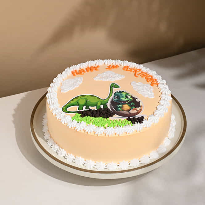 Delight your little explorer with our Dino Adventure Cake! Adorned with cream clouds, lush cream grass, and an adorable dinosaur design, it's perfect ... Read more