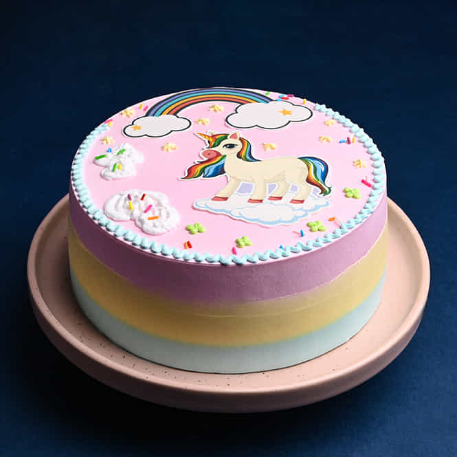 Dive into a magical realm with this Unicorn Cake! This enchanting cake, adorned in pink, yellow, and blue hues, has a playful unicorn on fluffy clouds... Read more