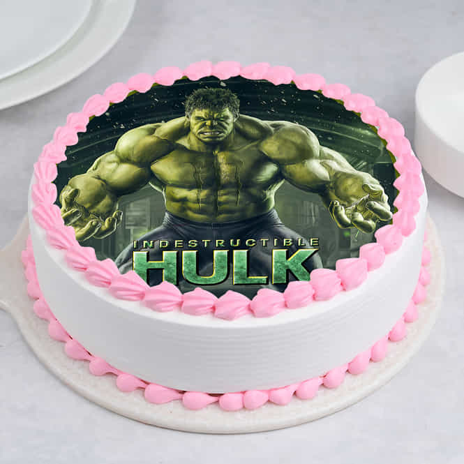 Transform your celebration with the indestructible Hulk cake! Showcasing the mighty green superhero in all his glory, it's the ultimate centrepiece fo... Read more