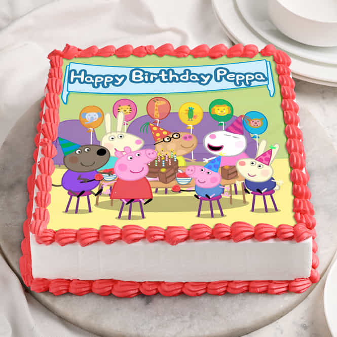 Bring joy to the celebration with our Peppa Pig cake. Featuring Peppa and friends, rich chocolate frosting, and elegant marble-patterned sides, this c... Read more