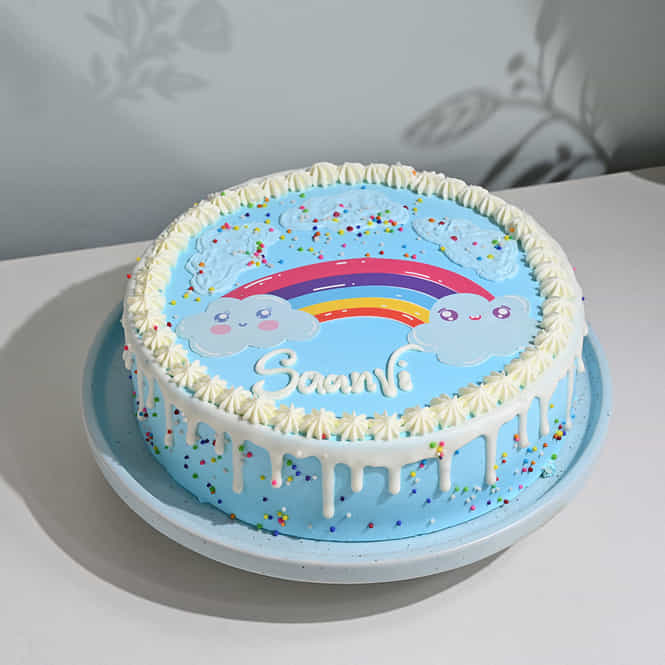 Celebrate with our sky dreams cream cake, featuring adorable cloud and rainbow sugar sheet artwork, colorful sprinkles, and white drip detailing on a ... Read more