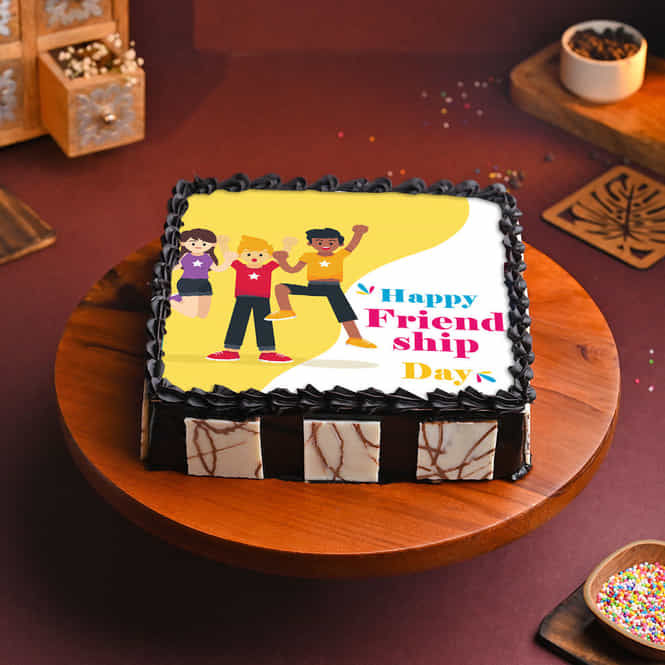 Send this vibrant and love-filled friendship day cake to your beloved bestie and relive the old moments once again. This poster cake is square-sized w... Read more