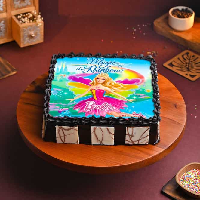 Make celebrations magical with our customizable Barbie Photo Cake. Topped with an edible sugar sheet displaying a stunning Barbie image, and available... Read more