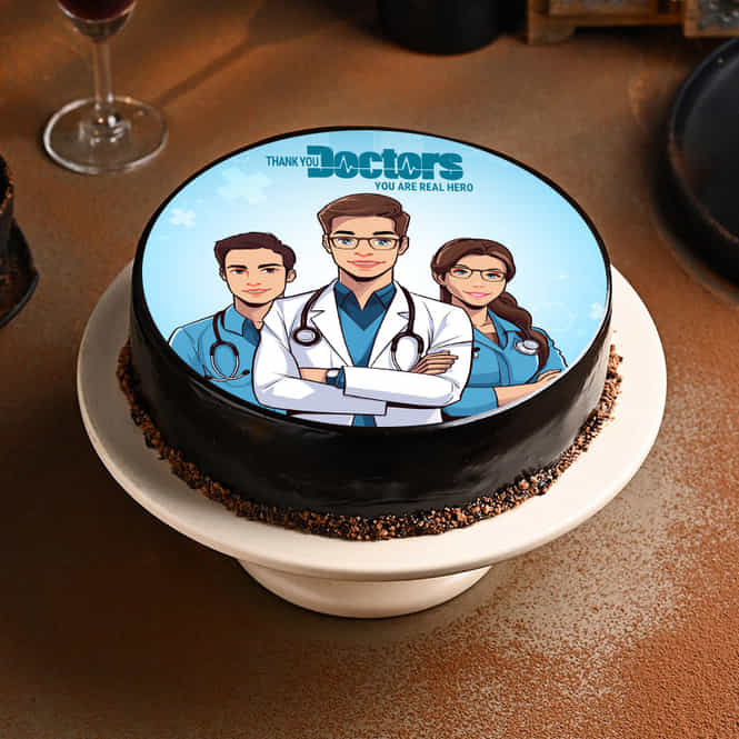 Thank You Doctors cake, featuring an edible cartoon print of doctors and a "Thank you Doctors" message, perfect for celebrating healthcare heroes on s... Read more
