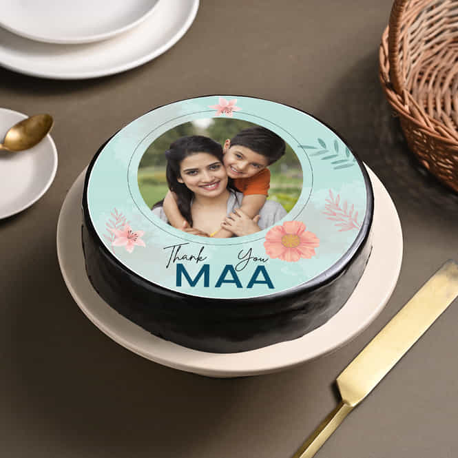 Honor Mother's Day with a custom floral motif photo cake enriched with a beloved image and a heartfelt "Thanks, Mom" message. Avoid placing the photo ... Read more