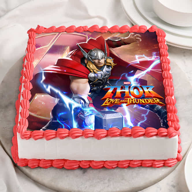 Unleash the power of celebration with this electrifying Thor: Love and Thunder cake. Adorned with the mighty Thor in action, it's the perfect centrepi... Read more