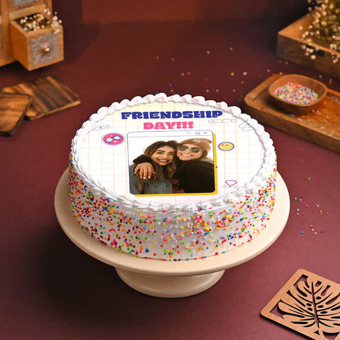 Sweeten Friendship Day with a custom photo cake! Add an adorable picture to this vibrant, sprinkle-edged cake, and make the celebration uniquely memor... Read more