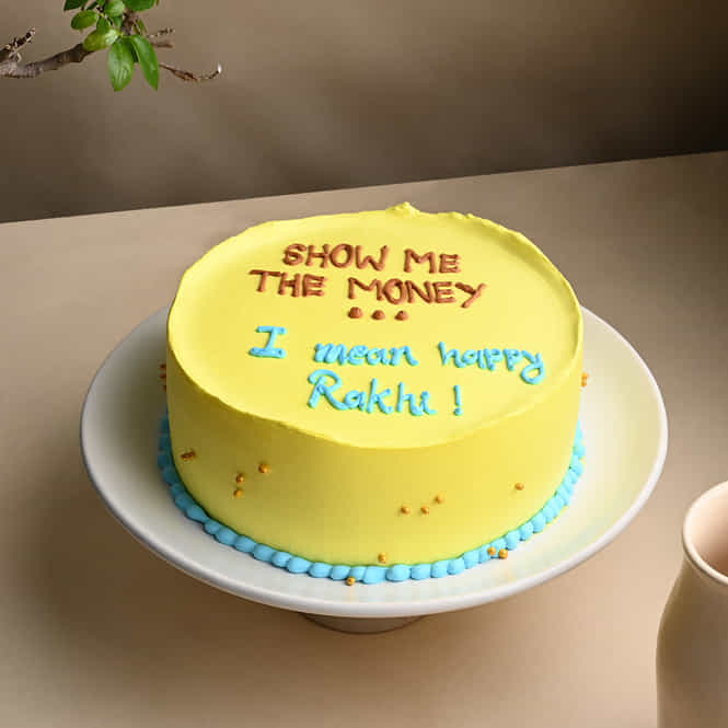 Add a touch of humour to Raksha Bandhan with this vibrant yellow cake! Decorated with a playful message and blue icing accents, this cake will be avai... Read more