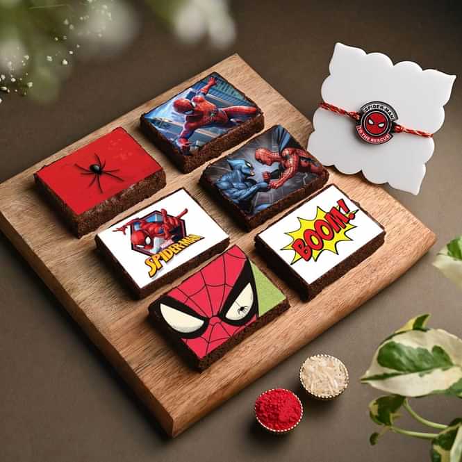 Add superhero magic to Raksha Bandhan with this Spiderman-themed combo, which has 6 assorted brownies: 2 pieces each of Double Choco, Classic Walnut, ... Read more