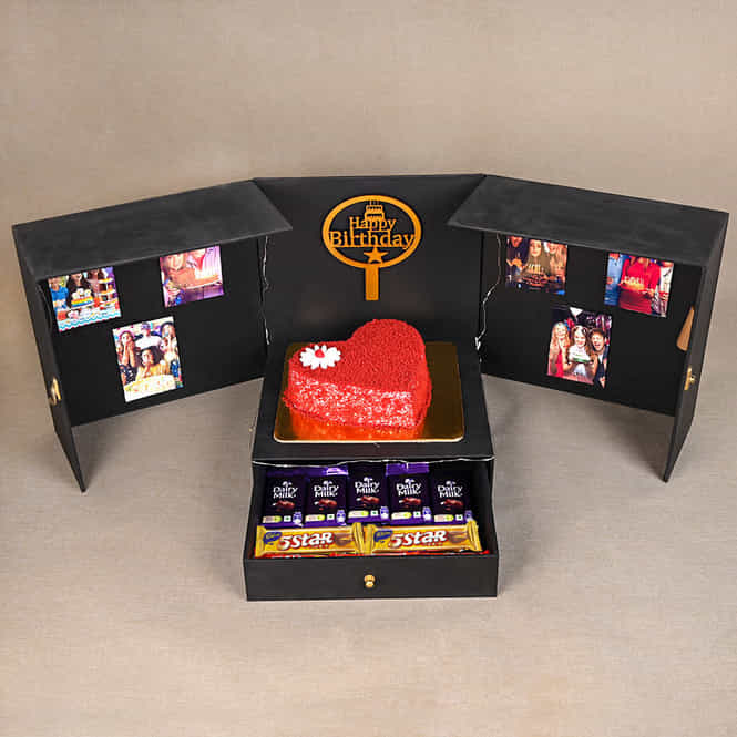 "Awesome surprise cake box my husband was so happy to see this gift"