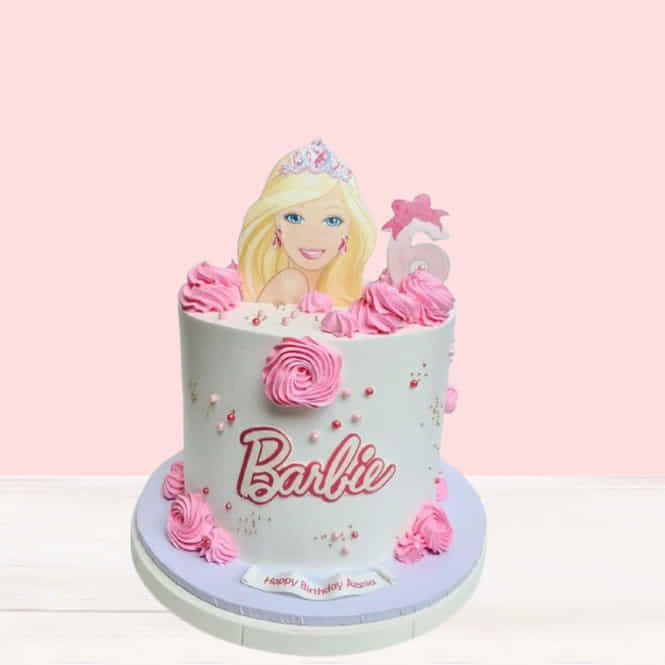 Experience the enchantment of this theme cake, adorned with pink crystals and a stunning Barbie cake topper!