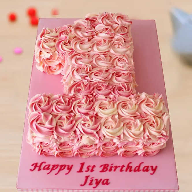 A sight to behold and taste to experience! A numbered cake in the shape of one enrobed in buttercream rosette swirls in the pretty rose and coral pink... Read more