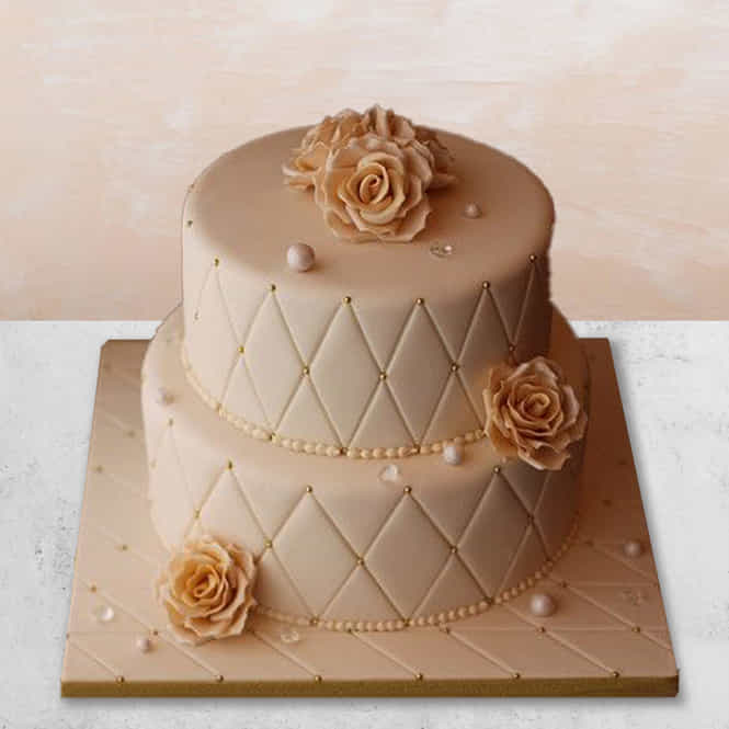 Delicious in taste, gorgeous to look at, order this two tier cake that is topped with rose lookalike floral and white pearly embellished edibles. This... Read more