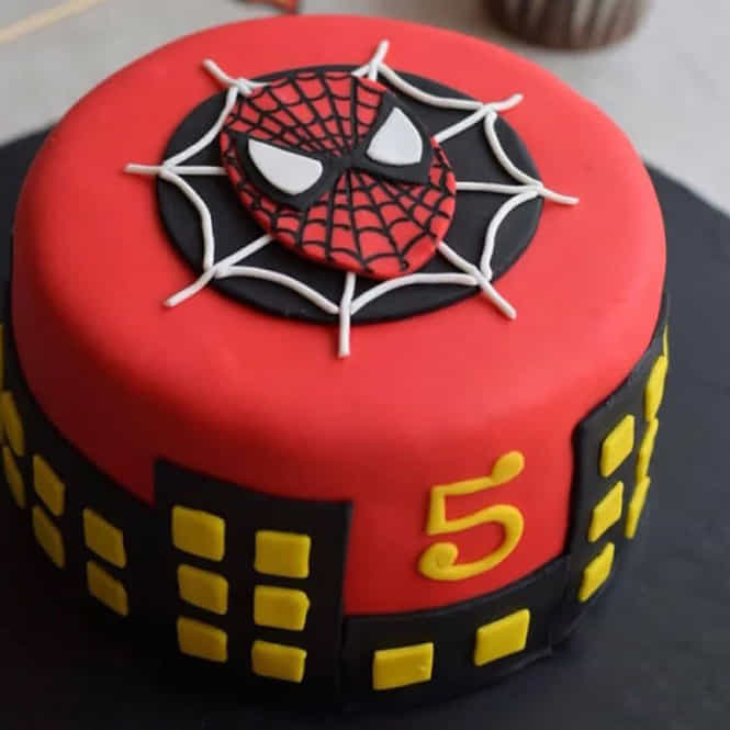 Cherish your child's 5th heroic birthday with this amazing Spiderman Cake! Perfect for themed parties, it has an ironic Spiderman's face atop a citysc... Read more