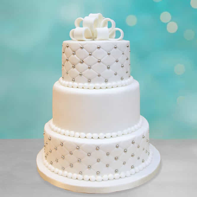 Silver Pearl Three Tier Fondant Cake